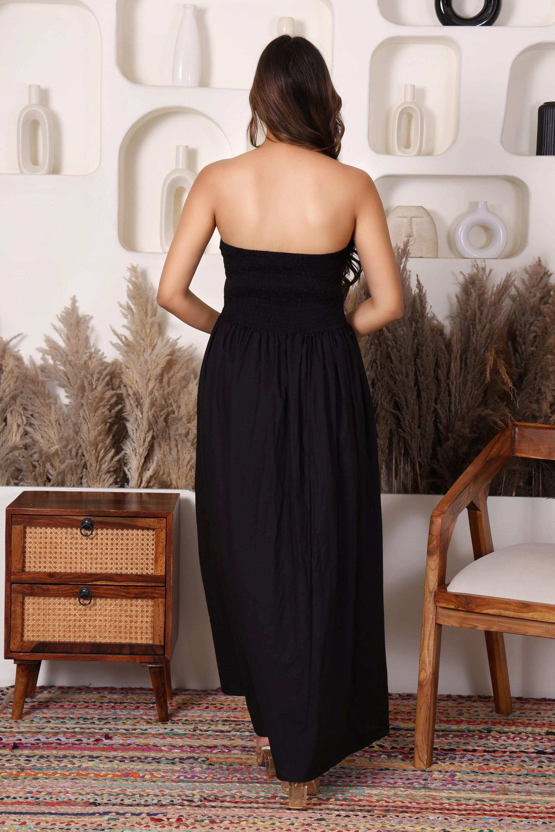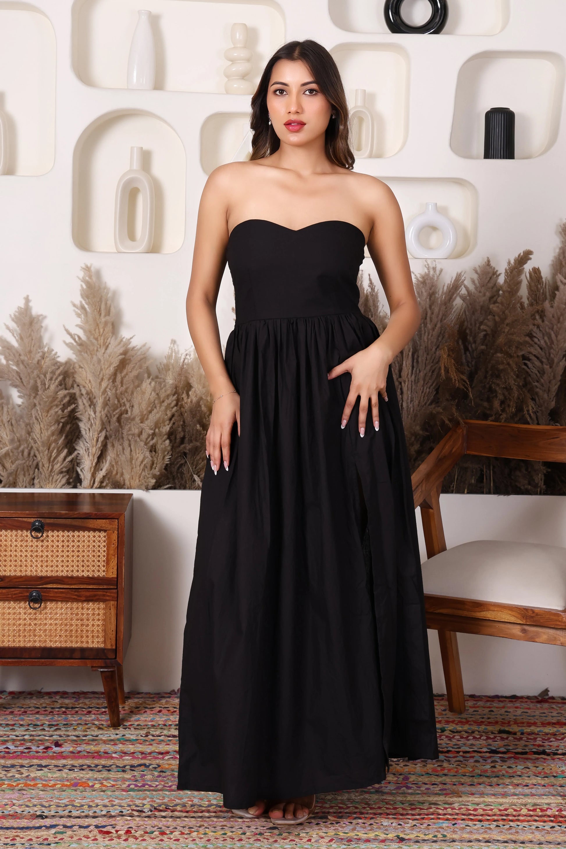 Let your presence linger with Raven Dusk ā a timeless black strapless maxi dress designed to make a subtle yet striking statement. Created for women who combine confidence with grace, this dress embraces the bodice and flows effortlessly from the waist, exuding poise and understated drama.